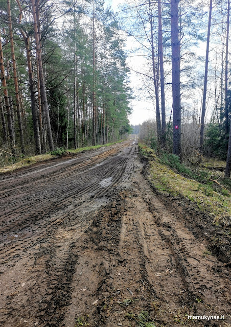 Visas kelias sužymėtas rodyklėmis... Raudonoji, tai ilgoji miško istorija. Žalią jau kažkur palikome.